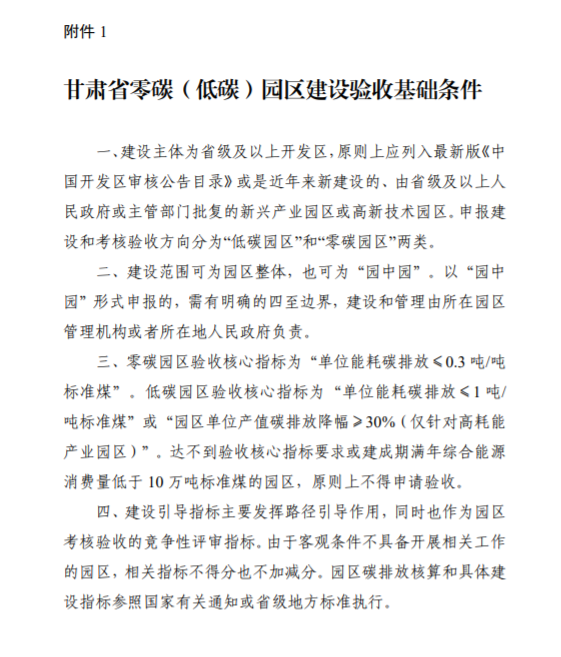 地方政策《甘肅省零碳園區(qū)建設方案》:5年建成10個左右零碳(低碳)園區(qū)