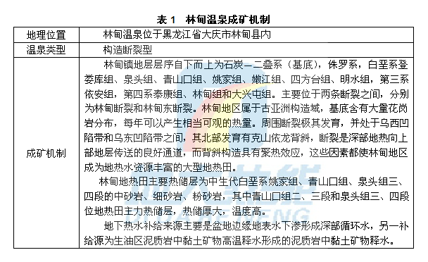 林甸溫泉常年水溫39.5-41.5°C。泉水清澈透明,含有鍶、溴、碘、偏硅酸、氟、重碳酸鈉、氯化鈉等多種對人體有益的微量元素。為含硼的重碳酸氯化鈉氟醫療熱礦泉水和含有鍶、溴、碘、重碳酸、氯化鈉復合型飲用天然礦泉水。是國內少有的既適宜洗浴又適合飲用的溫水泉。