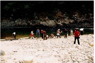 江西熱水洲溫泉風(fēng)景熱水洲溫泉長(zhǎng)100-150米,寬10-30米,水溫度64℃以上,日流量2000噸,沿河堤、河床呈泉群帶狀分布。溫泉主要出露于河床漫灘上,由深部斷裂帶熱水上升而成,儲(chǔ)存、運(yùn)移于河床卵石層中。