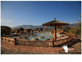 云南下關(guān)溫泉風(fēng)景明童軒《德勝關(guān)溫泉》詩(shī)云:蒸蒸本元?dú)猓柩┤藸?zhēng)浴。雖無(wú)澤物功,遠(yuǎn)勝貪泉屈。大理下關(guān)溫泉在山谷之中,背依附者摩山,峭石噻巖壁立,面臨大理西洱河岸,河水洶涌奔騰;庭院之中,設(shè)有大理亭閣游廊,遍植花木,四季花香,環(huán)境幽雅,景色宜人,下關(guān)溫泉是人們休假療養(yǎng)的場(chǎng)所。